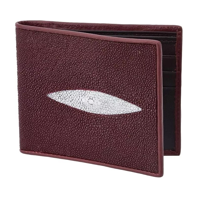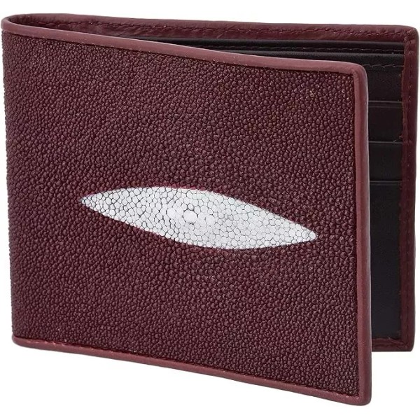 White Diamonds Burgundy Stingray Wallet Real Bi-fold Card Slots ID Slot Bill Compartment Real