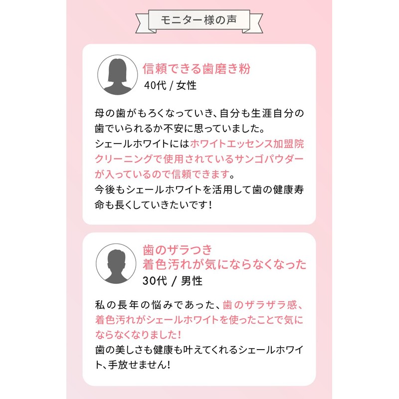 - Recommended for those who are concerned about staining their teeth: Coral powder. By brushing it to remove dirt, it becomes a smooth tooth that you want to touch the surface of your teeth