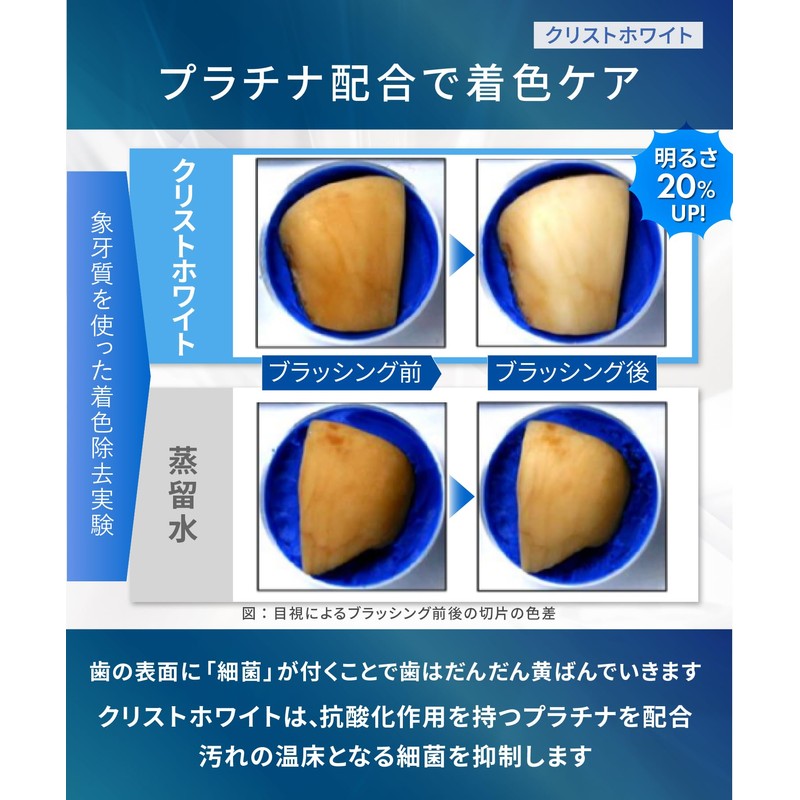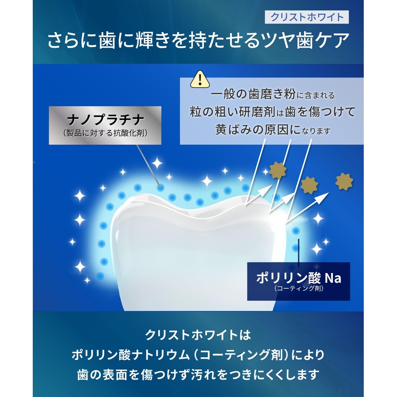 - Christo White: Whitening toothpaste is formulated with nano platinum * and sodium polyphosphate*. Brushing removes dental plaque and coloring and leads to sparkling white teeth