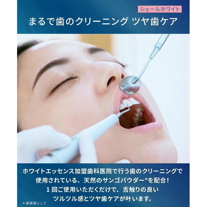 - Shale White: Formulated with coral powder, which is also used in the cure of the White Essence Association dentist. Removes dental plaque without harming your teeth