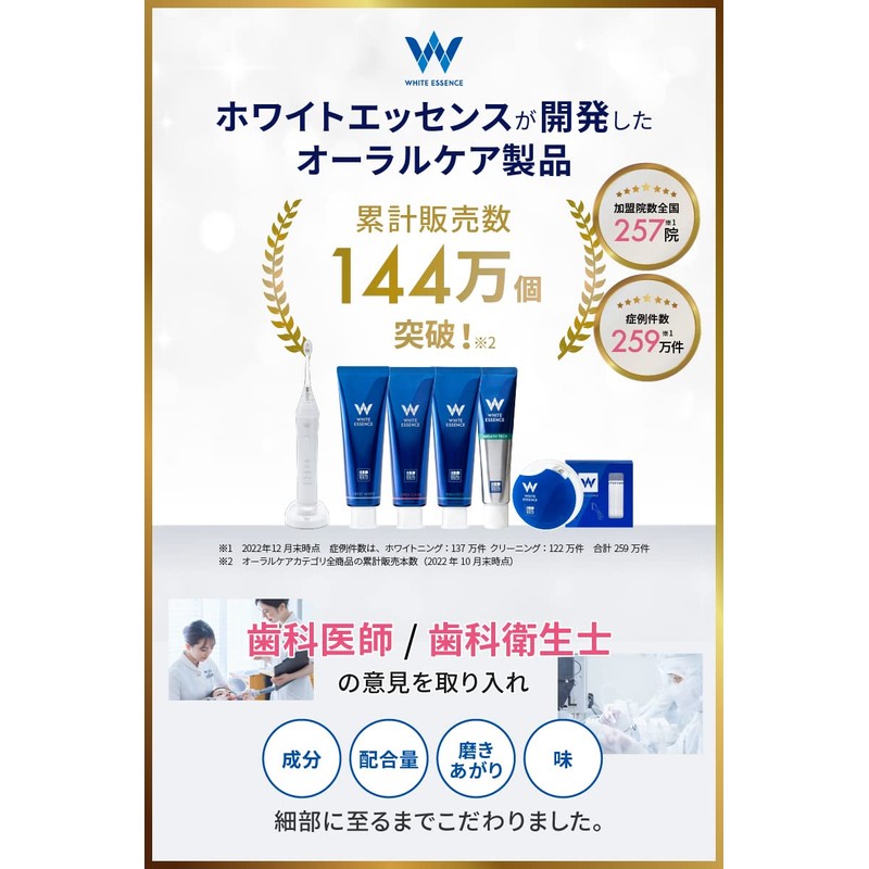 - Toothpaste developed based on the knowledge of a dentist: This toothpaste set was developed by White Essence that has developed the service of teeth whitening and cleaning at 10.2 x dental clinics nationwide. *As of December 2022