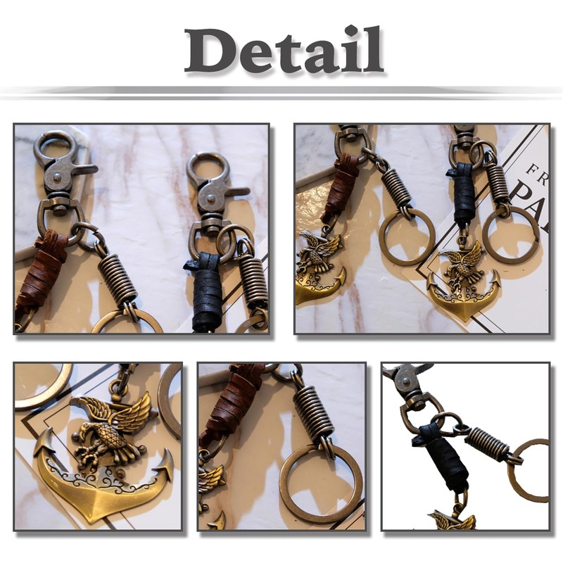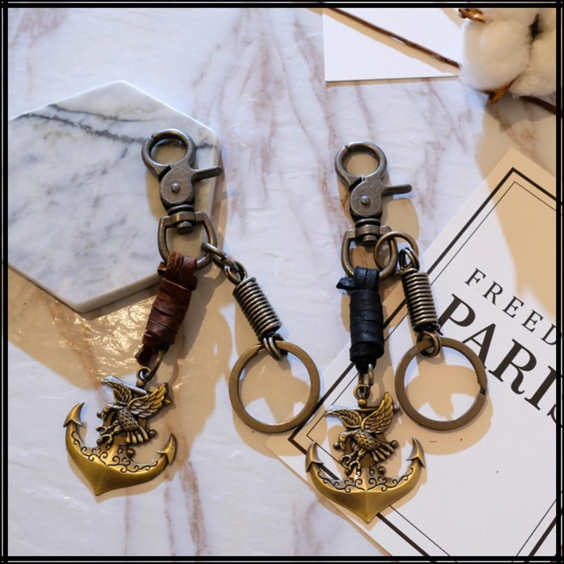 White Fang AZ218 Keyring, Leather, Anchor, Hawk, Eagle, Retro Charm, Miscellaneous Goods, Keychain, Men's, Women's,, coffee
