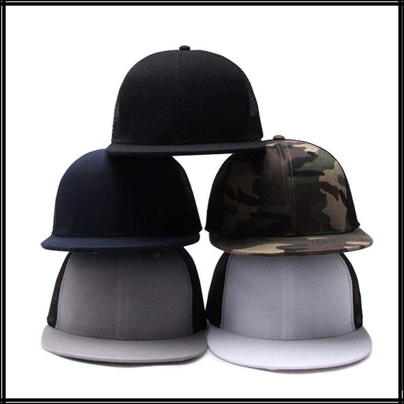 - This men's casual flat brim cap features a stylish solid color and camo mesh design