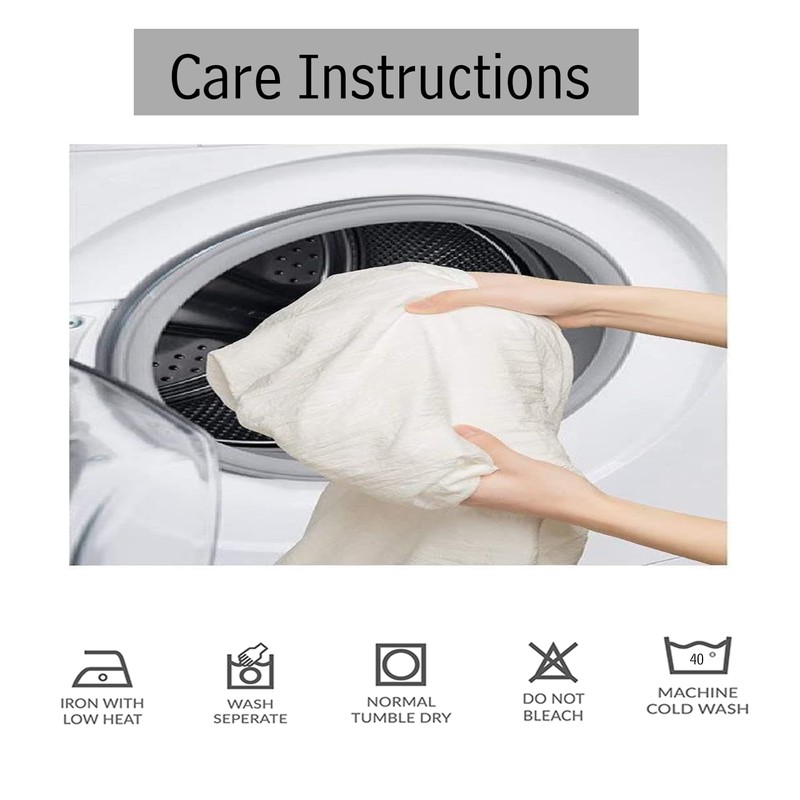 - Care instructions: Please Follow the Instruction for the best results. Do not use very hot water or bleach and do not wring or leave standing in wet pile. Wash before use. Dark colours must be washed separately. Wash deep dyed colours inside out. Machine washable at 40 degrees & Hand-washable.