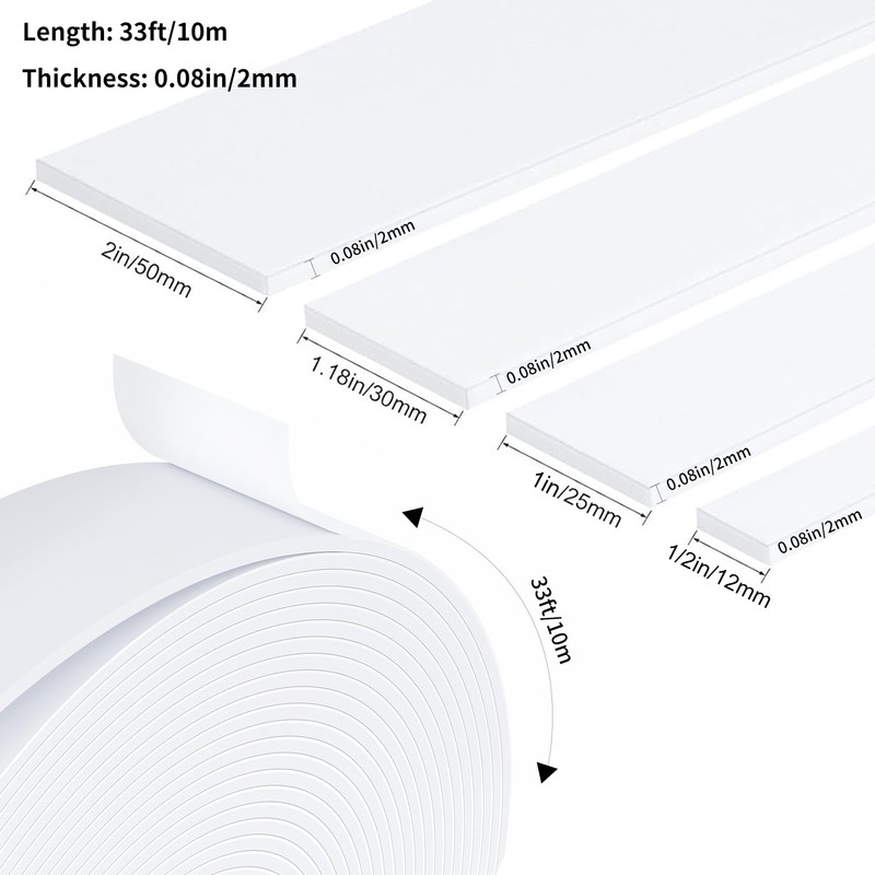 - 【Product Size】1 roll of 1.18" W x 1/13" T x 33' L foam tape.