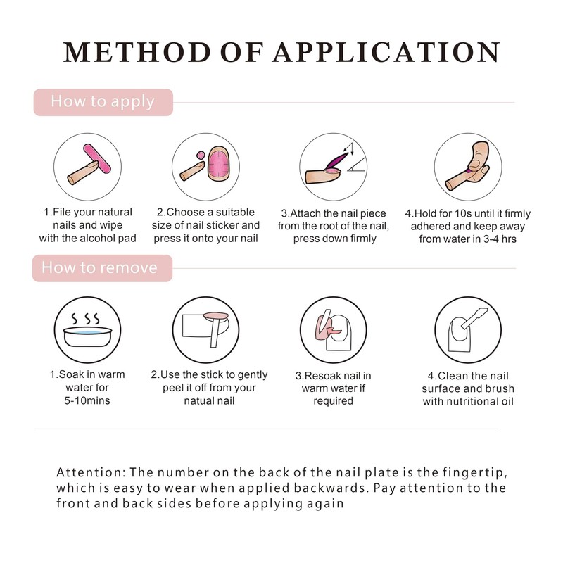 - Simple operation: Our Medium Fake Nails are designed for quick and easy application, allowing you to effortlessly achieve salon-quality results in the comfort of your own home. No need for time-consuming and costly trips to the nail salon – simply press them on and you're ready to go!
