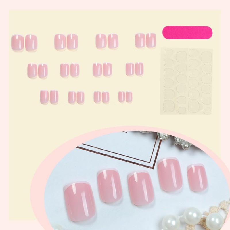 - Package Nails: You'll get 24 false nails in 12 sizes. 1 mini nail file, 1 small wooden stick, 1 piece of adhesive tab glue. You can safely choose a fake nail that fits your finger size and DIY your desired nail shape