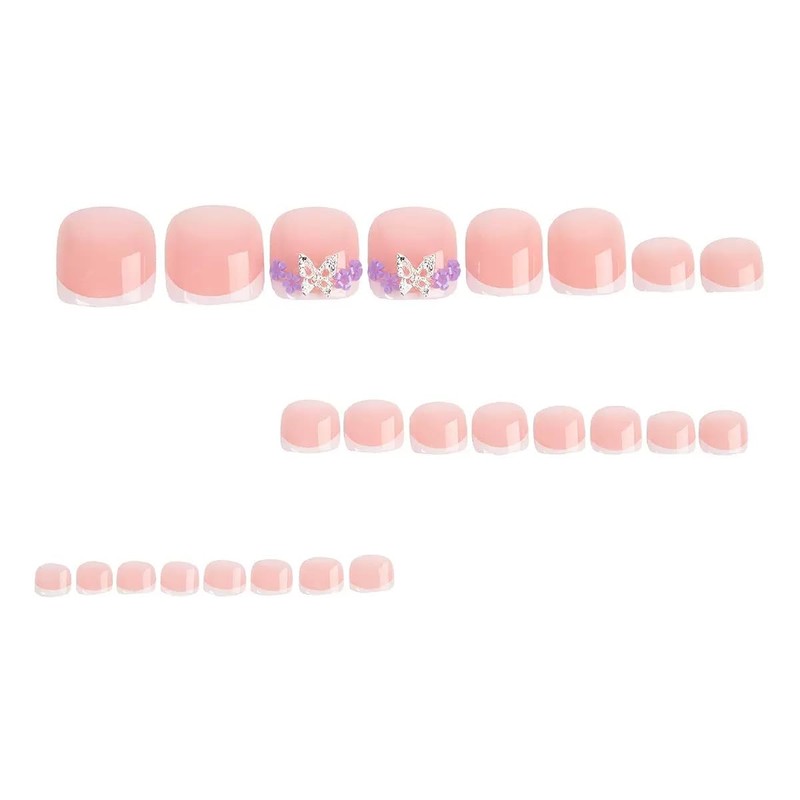 - Package Contains: You will get 24pcs French tip press on toenails, 1pcs nail file, 24pcs jelly glue sticker, 1pcs wooden stick for removing false toenails. Jelly glue is not as durable as liquid glue, but it make square press on toenails reusable. Please use suitable glue according to different scenes