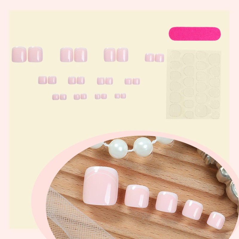 - Package Nails:You'll get 24 fake toe nails in 12 sizes. 1 mini nail file, 1 small wooden stick, 1 piece of adhesive tab glue