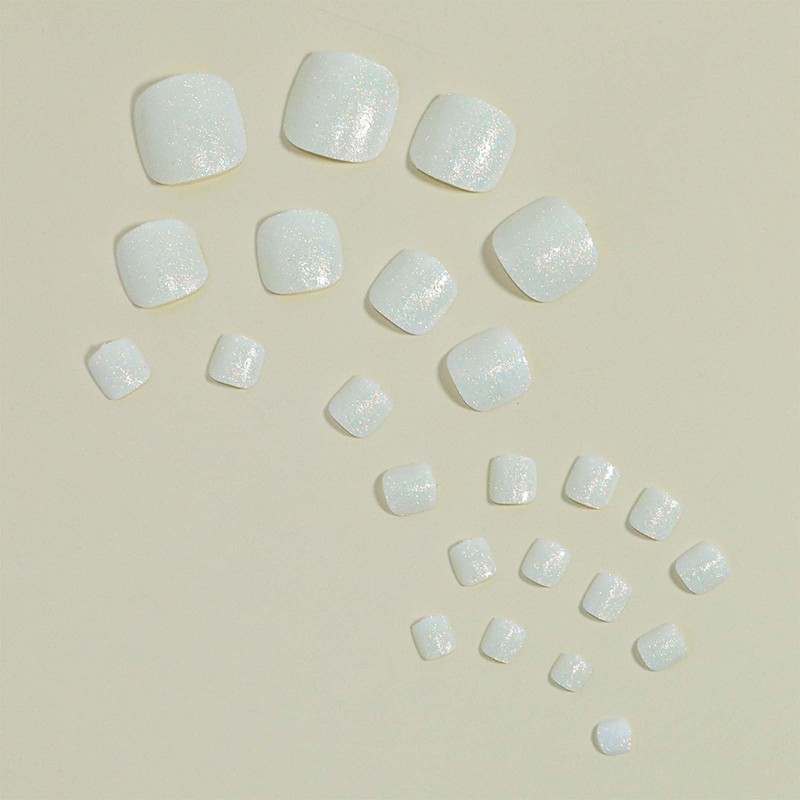 White Glitter False Toenails - 24PCS Press on Nails - Acrylic Short False Nails Glitter Classic White Color - False Nails with Glue Long Lasting Nail Art Home DIY Toe Nail Tips