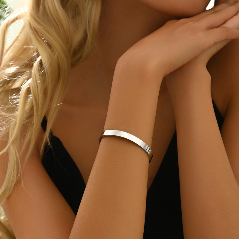 - Trendy Design: It's a minimalist chunky bracelet that you can wear alone or be stacked with other jewelry. The open bracelet design conforms to most adult wrists, and the glossy polished design accents your outfit for both men and women