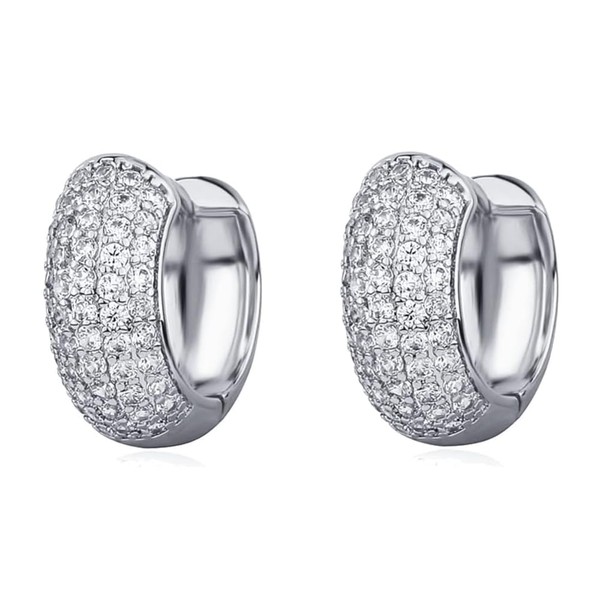 White Gold Plated 925 Sterling Silver Hoop Earrings Flower Set 3d Fully Iced Cubic Zirconia CZ 12mm Unisex Ice Out Huggie Small Sparkle Silver Hoop Earrings Fine Jewelry Birthday Gifts for Men,Women,