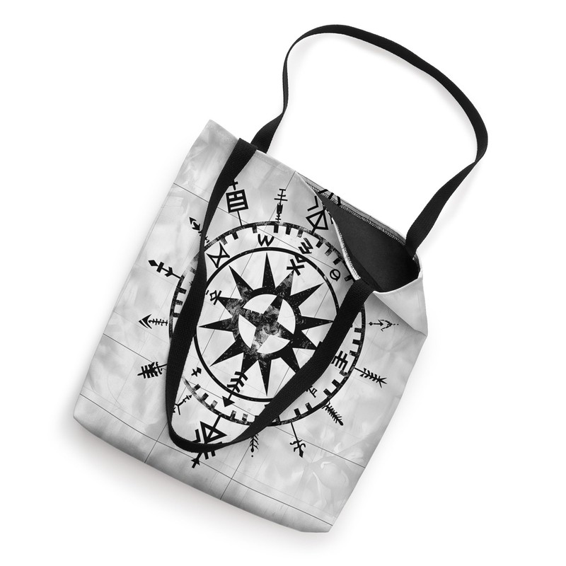 White Minimalist Checkered Vegvisir Viking Compass with Tote Bag