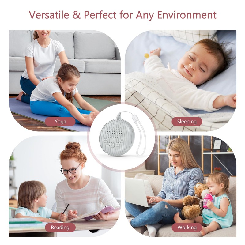 - VERSATILE SOUNDS This portable white noise system provides 10 soothing sounds such as sea noise, rain, fan etc. for stress reduction and better concentration.