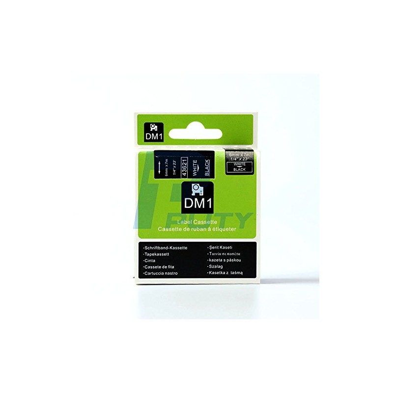 White on Black Tape Label Compatible for DYMO 43621 D1 6mm 7M 1/4" X 23'