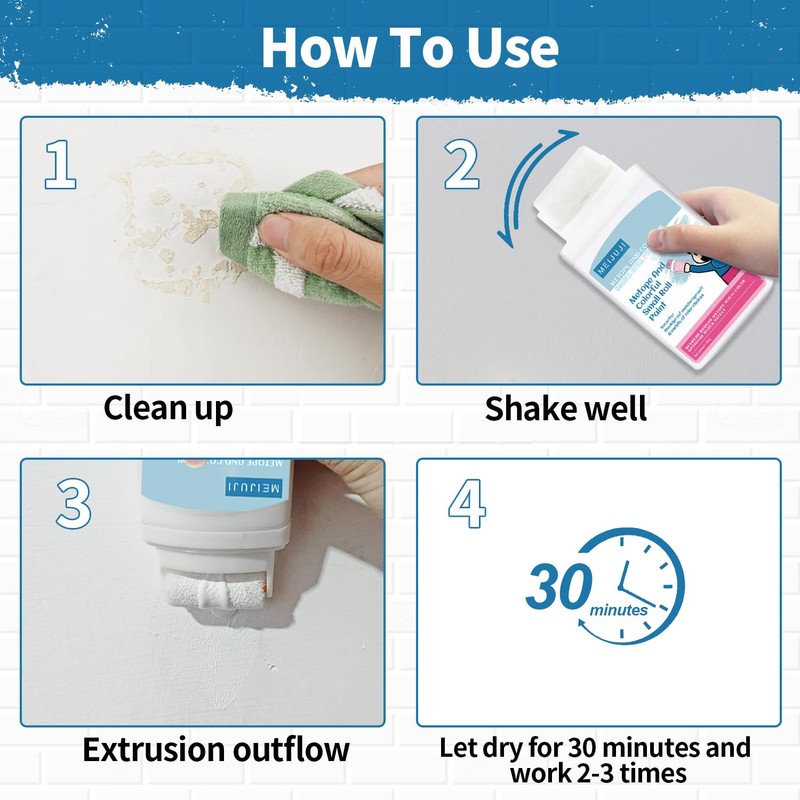 - [Easy to Use] With a small roller brush, you just need to gently squeeze it out and roll it back and forth on the wall to remove stains, cracks and graffiti .