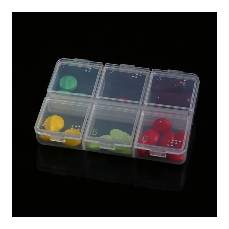 White Pills Organizer 6 Cells Empty Box Braille Weekly Case for Travel Case Pillbox,Medication Aids,Personal Pill Organizers