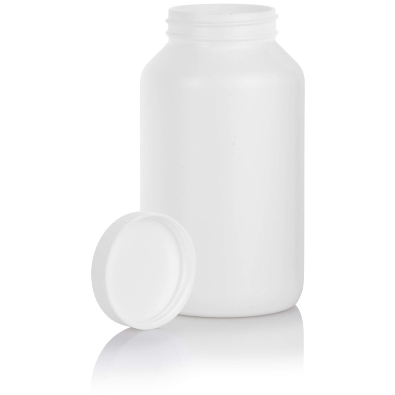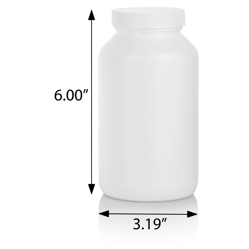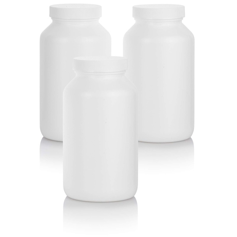 White Plastic HDPE Packer Bottle with White Ribbed Lid 17 oz (3 pack)