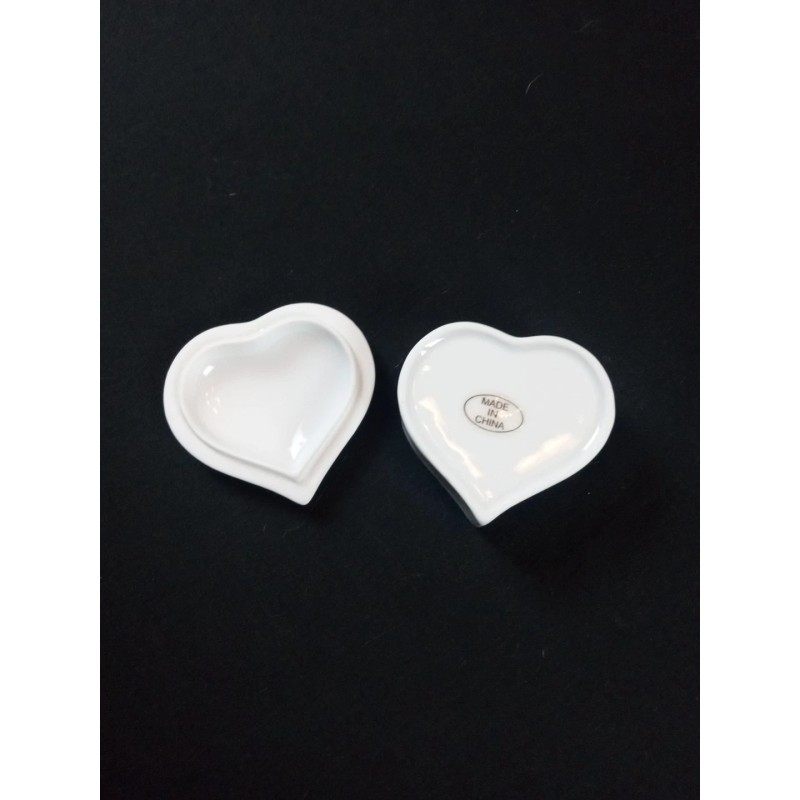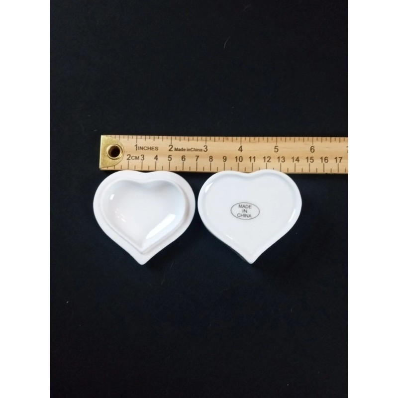 White Porcelain Heart Shaped Trinket Ring Jewelry Box With Lid