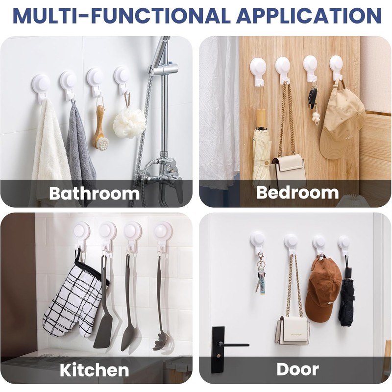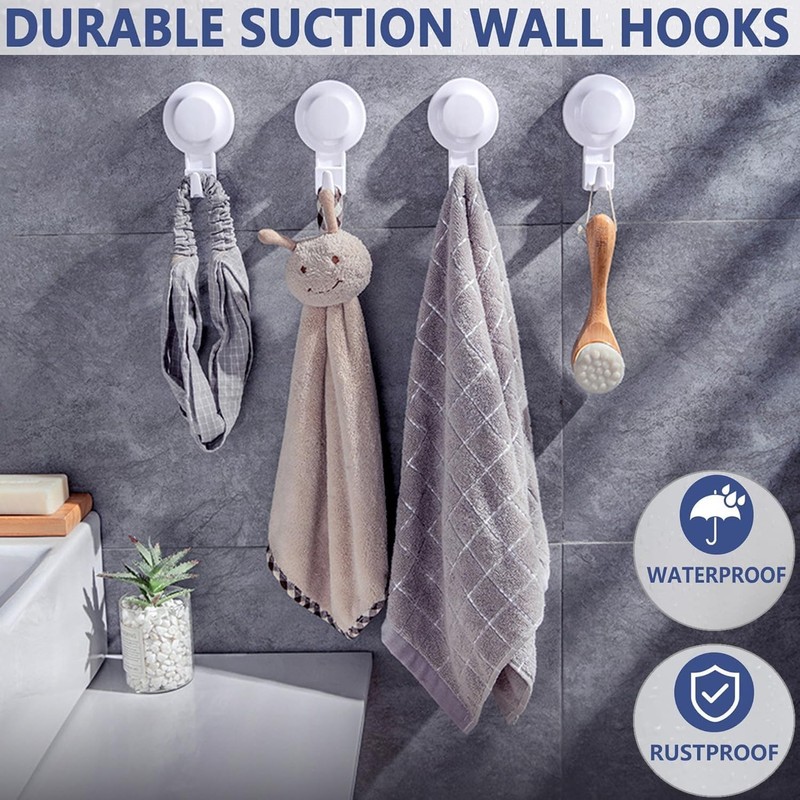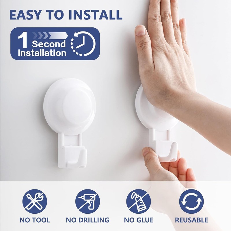 - Easy to Install: Shower towel hooks can be easily installed without drilling, tools, nail or glue. Only take off the adhesive cover and press the button of bathroom suction hooks to squeeze out the air to hang something. it is perfect for those renters or people who don't like to drill holes in the walls of their home.
