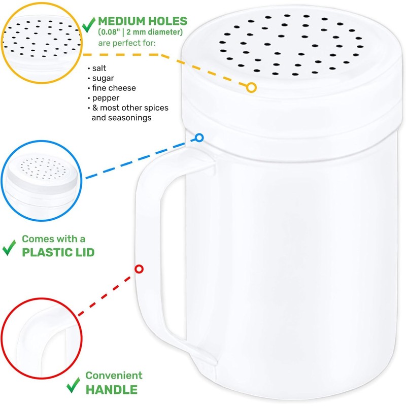 White PP Plastic Salt Pepper Dredge Shakers - with Plastic Cap - with Handle - Pack of 2 (White, One Size)