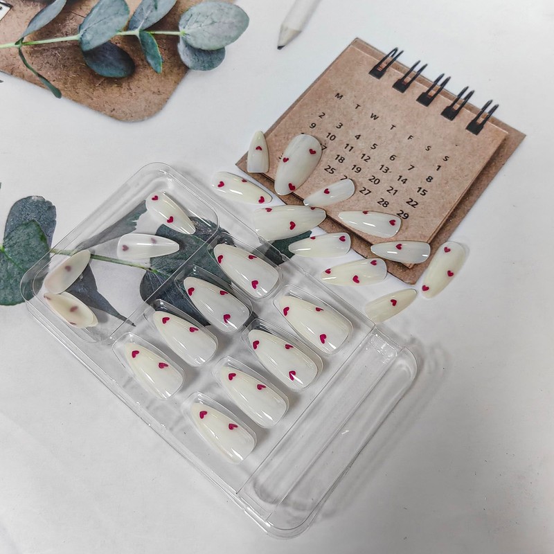 • 【Easy to Apply】These Valentines fake nails with design come ready to wear.Instead of spend lots time and money at nail salon,you can change you nails style in 15 min anytime and anywhere.(The fake nails will stay longer if you clean your nails before use,and avoid water within the first hour of wearing)