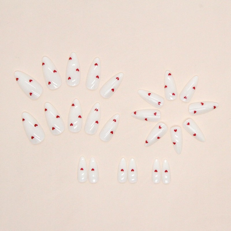 White Press on Nails with Designs Red Fake Nails with Glue Glossy Almond False Nails Valentines Day Nails Press on Acrylic Nails Winter Medium Glue on Nails Litter Heart Stick on Nails for Women 24Pcs