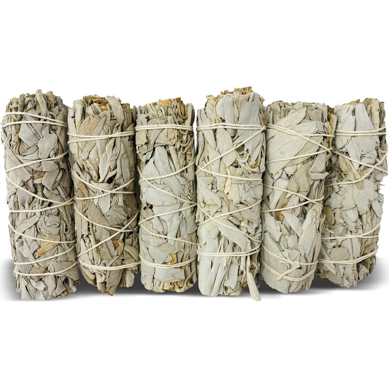 - ✅Complete Set: Each package contains 6 pieces hand-wrapped White Sage smudge sticks, approximately 10 cm long 45-55g weight. Use them to cleanse your body, mind, or surroundings, inviting luck and blessings into your space with every use.