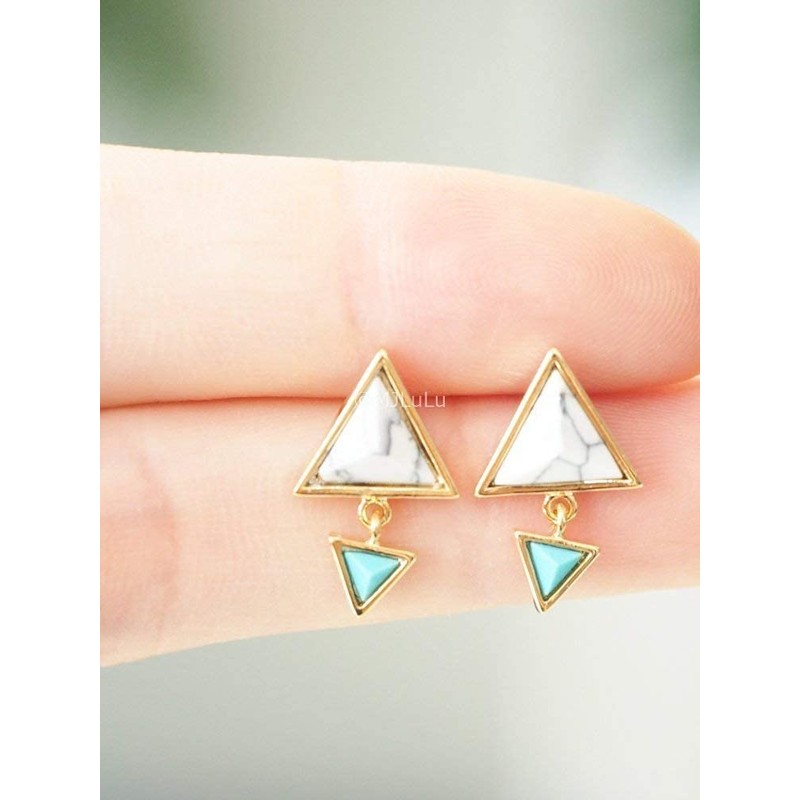 White Simulated Howlite and Simulated Turquoise Double Triangle Minimal Dangle Stud Earrings