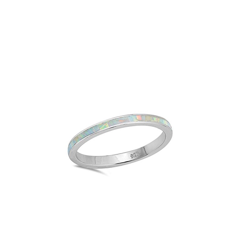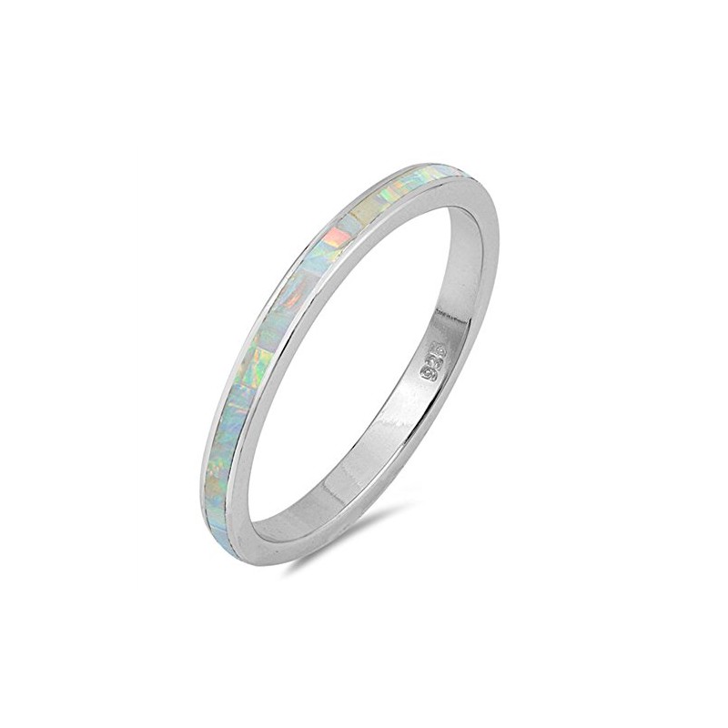 White Simulated Opal Eternity Stackable Ring New .925 Sterling Silver Band Size 5