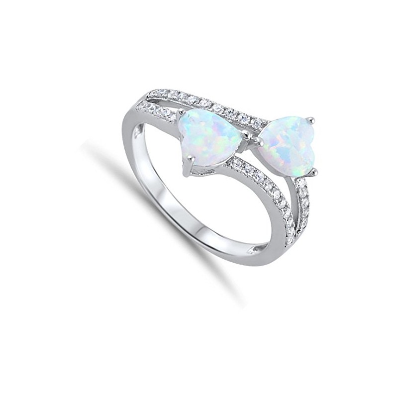 White Simulated Opal Infinity Heart Promise Ring .925 Sterling Silver Band Size 10