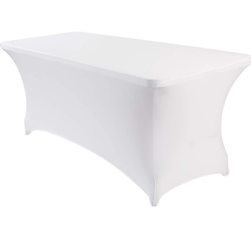 White Spandex Tablecloth 6ft Tight Fitted Washable Stretch Table Cover Rectan...