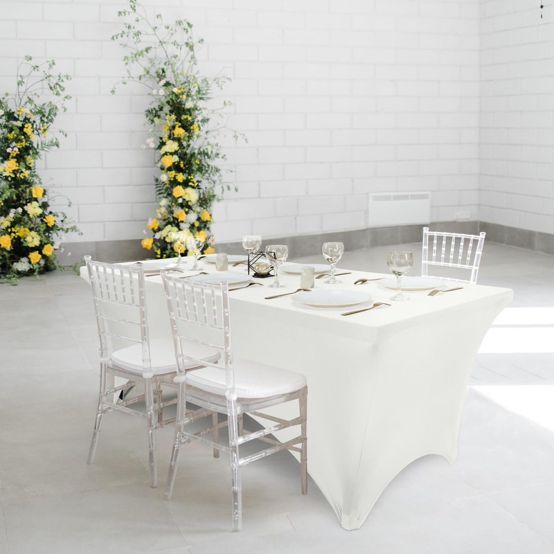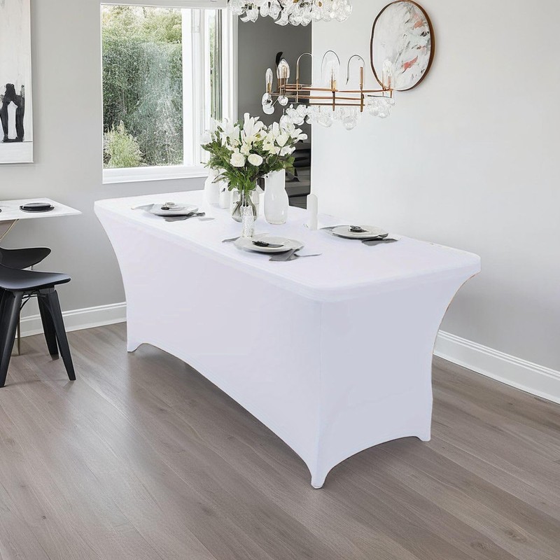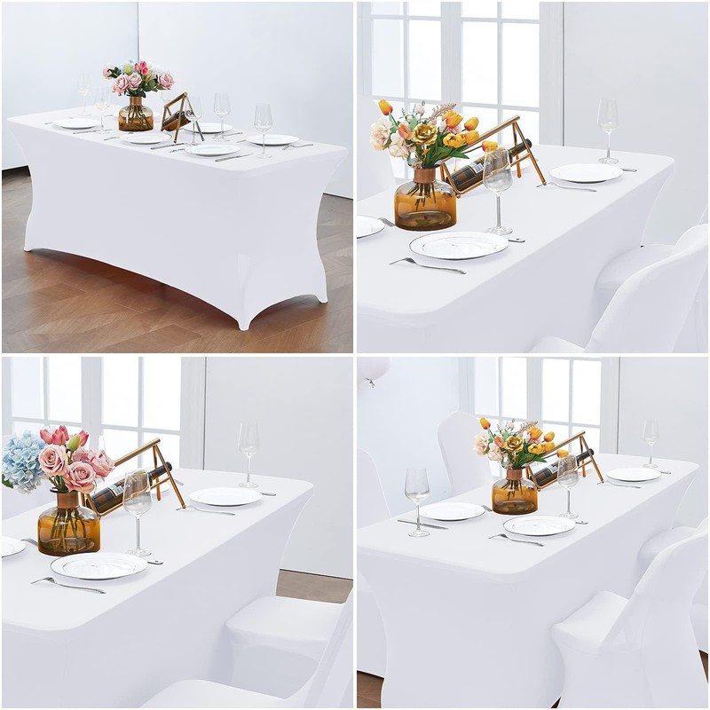 White Spandex Tablecloth 6ft Tight Fitted Washable Stretch Table Cover Rectangular for Dinner Wedding Banquet Events Birthdays Party Cloth