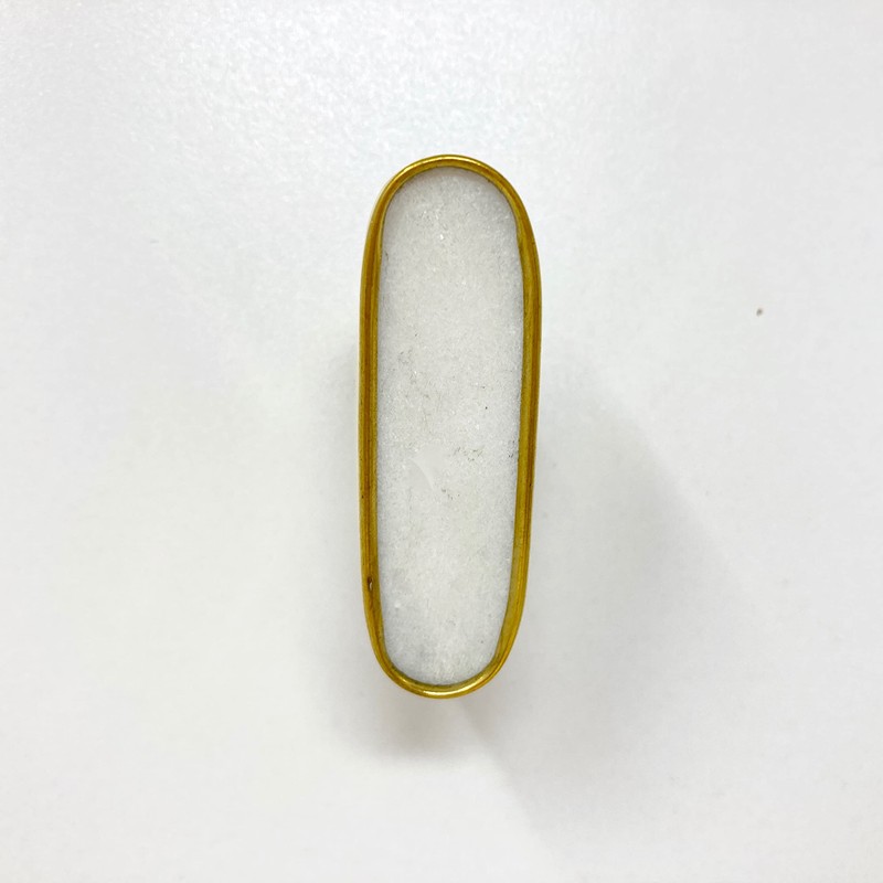 White Stone Solid Marble and Brass Drawer Door Knobs Cupboard Handles, Drawer Pulls (5. Oval Marble/Brass)
