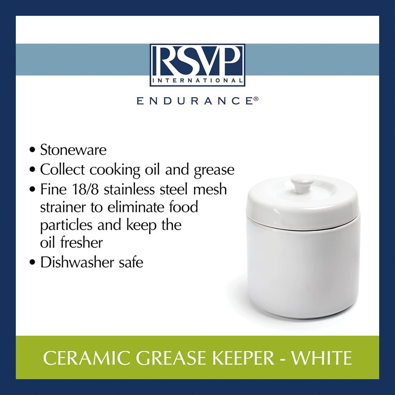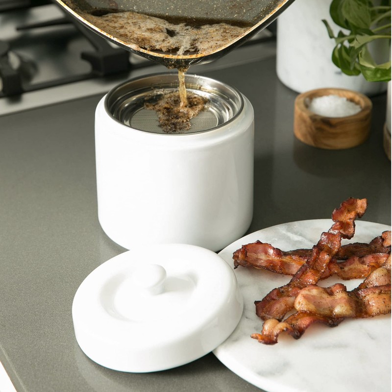 • Beautifully designed to keep on your counter to collect cooking oil and grease, while still being an attractive accessory