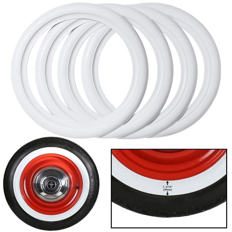White Wall 18 inch Tires Portawalls X4 Add on Insert Trim Set Hot Rod Style