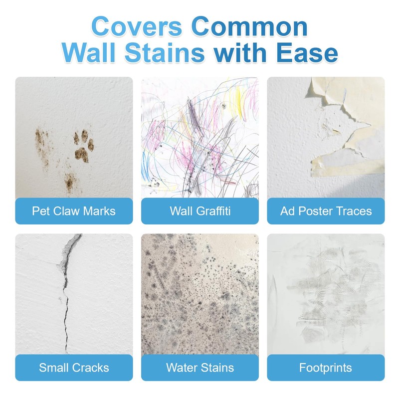 - Versatile Applications: Ideal for walls, ceilings, baseboards, and even outdoor touch-ups. Effectively removes common marks like shoe scuffs, pen graffiti, or ad residue. Whether you're renovating, decorating, or fixing accidental damage, this is your go-to wall repair solution.
