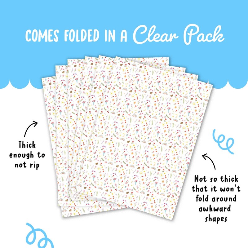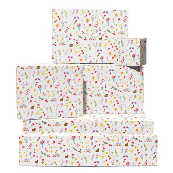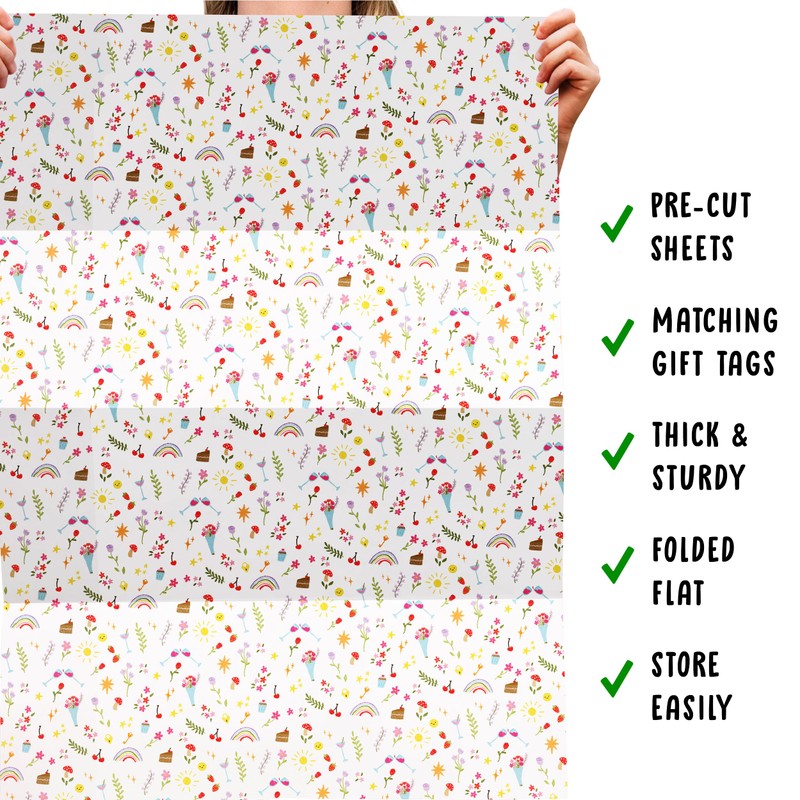 White Wrapping Paper - 6 Sheets Aesthetic Birthday Wrapping Paper - Flower, Mushroom, Rainbow, Star - Positive Doodles - Wrapping Paper Girls Teens - by Central 23