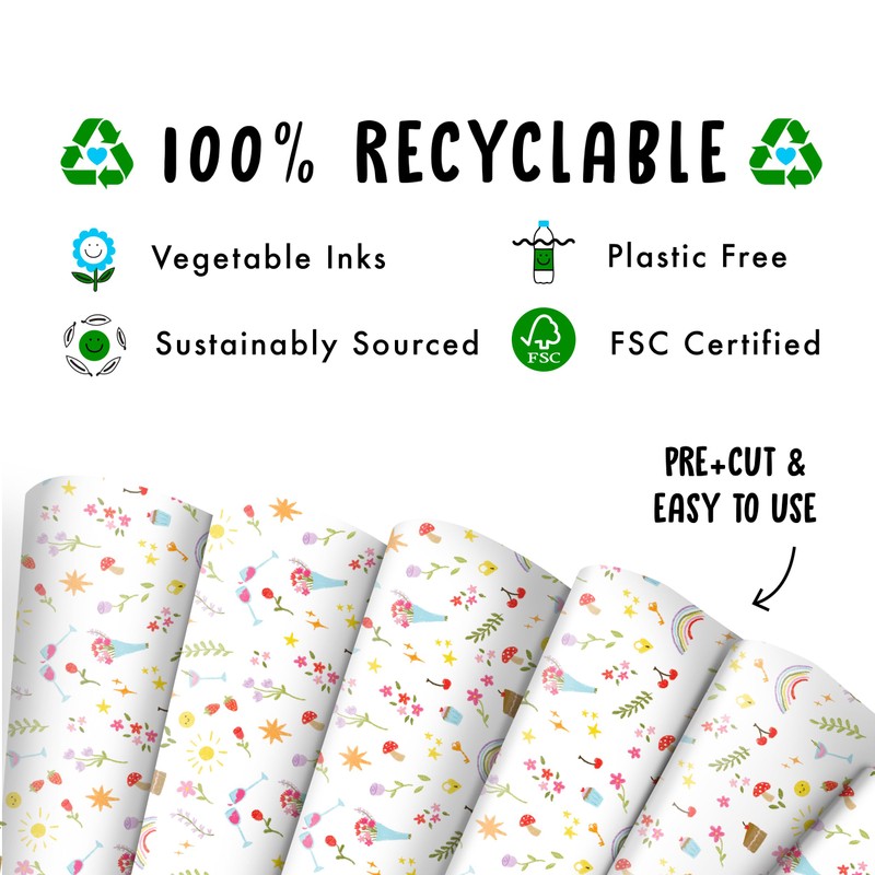 - Fully recyclable – super cute designs, delivered in a recyclable paper sleeve, our ink is vegan and free from chemicals.