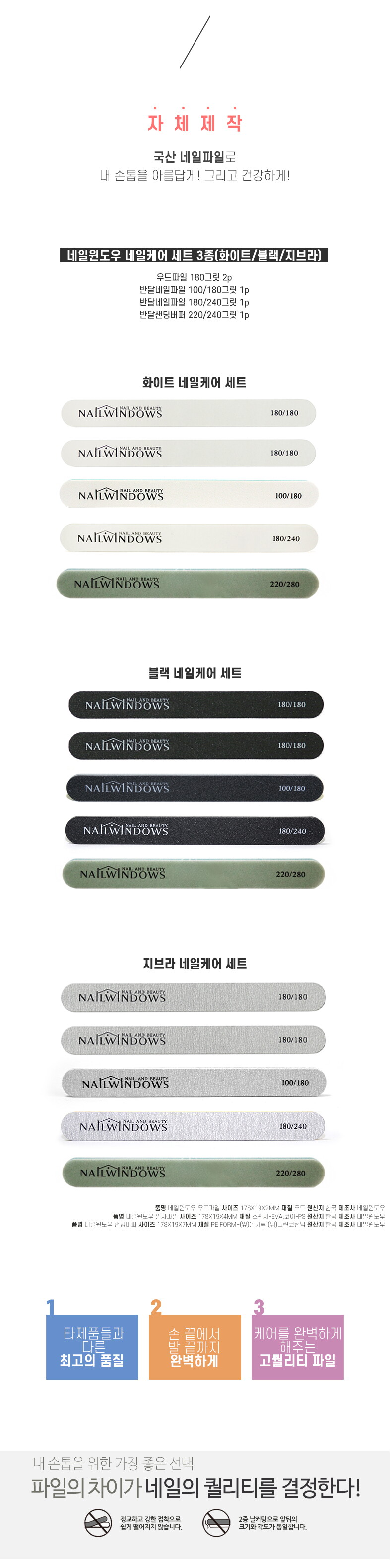 화이트 지브라 블랙 네일케어세트 3종 네일파일세트 우드화일 샌딩파일 셀프네일 손톱관리