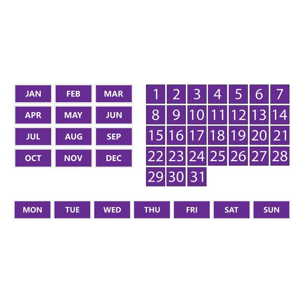 Whiteboard Calendar Magnet Bundle (Dates, Days of The Week, Months) by DCM Solutions (Purple, 0.5"x0.5")