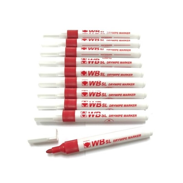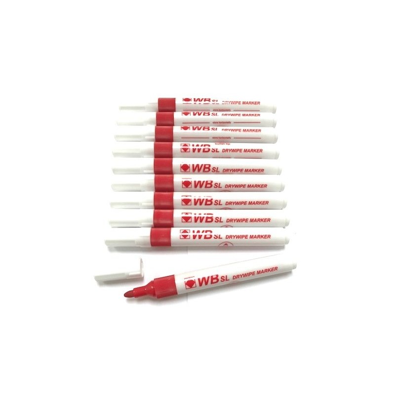 Whiteboard Drywipe Bullet Tip Red Markers x 10 (PC)