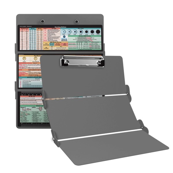 - Full size folding nursing clipboard with medical reference cheat sheet used by nursing professionals.
