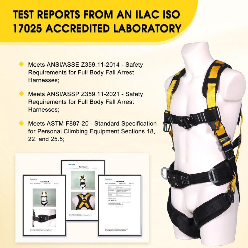 - OSHA COMPLIANT: Harness is designed for a maximum capacity of 350lbs. Meets ANSI Z359.11; and OSHA 1910.140 and 1926.502. We rigorously test all our Fall Protection safety products to ensure they meet global industry standards established by OSHA, MSHA, ANSI, CSA and CE