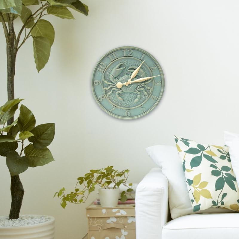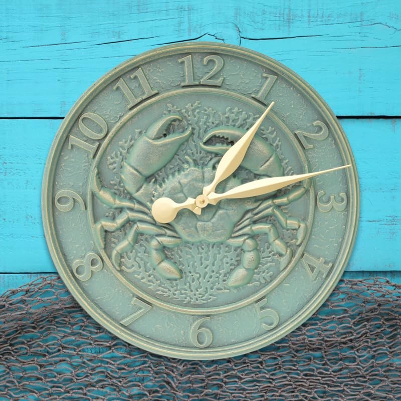 Whitehall Products Crab Sealife Clock, Bronze Verdigris