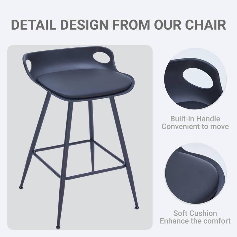 - Reliable Durability: Constructed from premium materials, our bar stools are built to withstand the test of time. The sturdy frames of barstools are made from powder-coated metal, capable of bearing significant weight (300lbs). The seat of counter height stools is not only stylish but also resistant to wear and tear, making these bar chairs set of 2 perfect for both residential and commercial use.