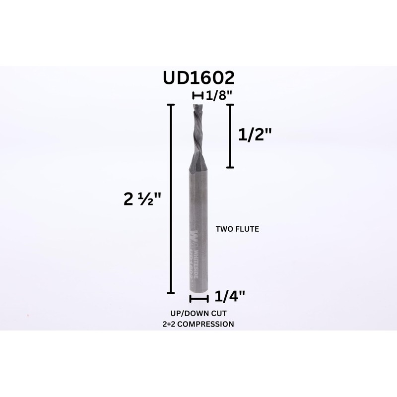Whiteside #UD1602 Up/Down Cut Spiral Bit SC 1+1 1/4SH 1/8CD 1/2CL 2-1/2OAL 1FL