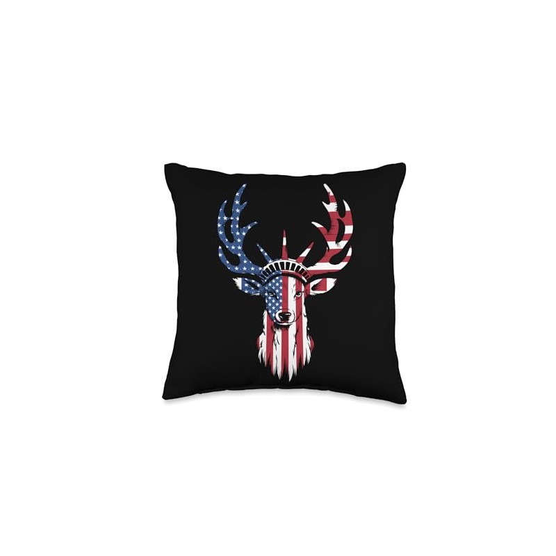 Whitetail Deer With Statue Of Liberty’s Crown American Flag Throw Pillow