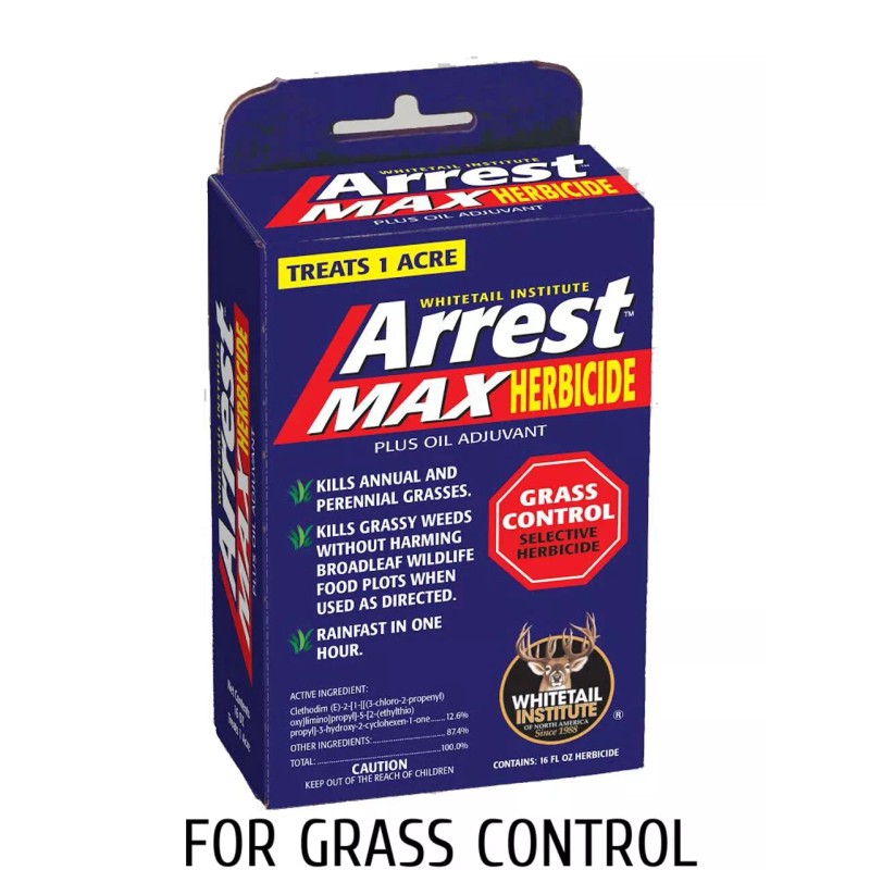 Grasses and weeds can crowd out your carefully planted perennial food plots. Using the right herbicide can help ensure that your food plots perform their best and last much longer. Arrest Max is a selective grass herbicide that will control most grasses, without harming clover, alfalfa, chicory or any Whitetail Institute perennial food plot.