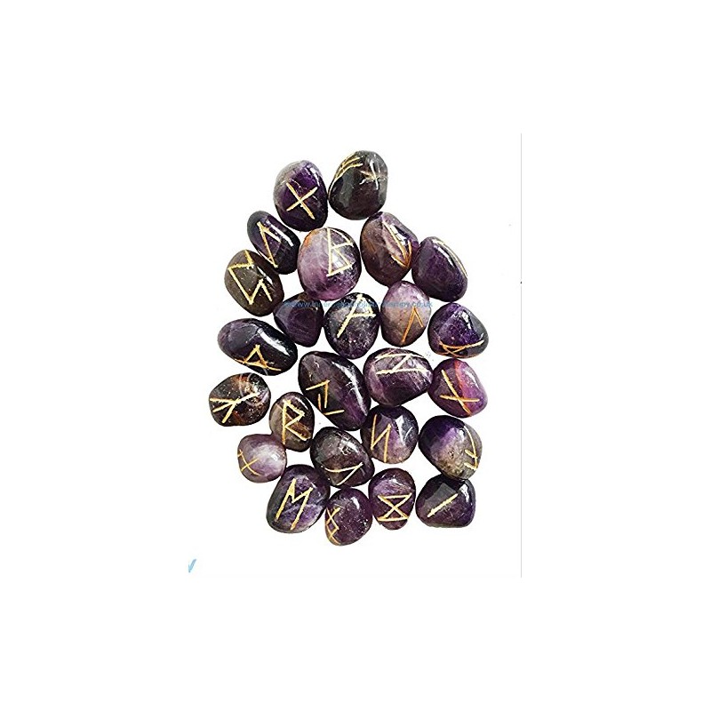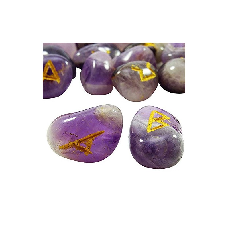 Whitewhale Amethyst Rune Stones Tumbled Engraved Lettering Crystal Set Healing Chakra Reiki